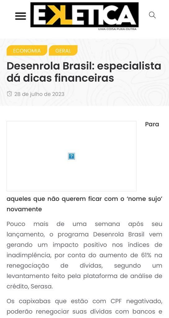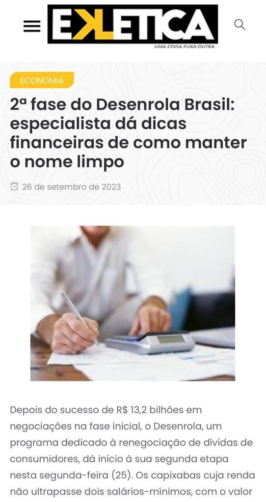 2ª Fase do Desenrola Brasil: especialista dá dicas financeiras para manter o nome limpo.